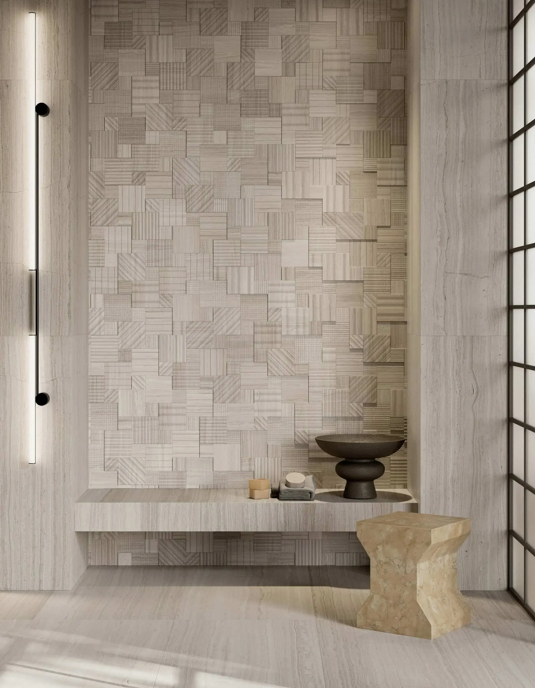 Salvatori brings a contemporary sensibility to natural stone, redefining its role in architecture and interior design through innovative surface treatments and refined material selection. With a focus on texture, tactility, and craftsmanship, Salvatori transforms stone into a versatile design element that balances tradition and modernity.