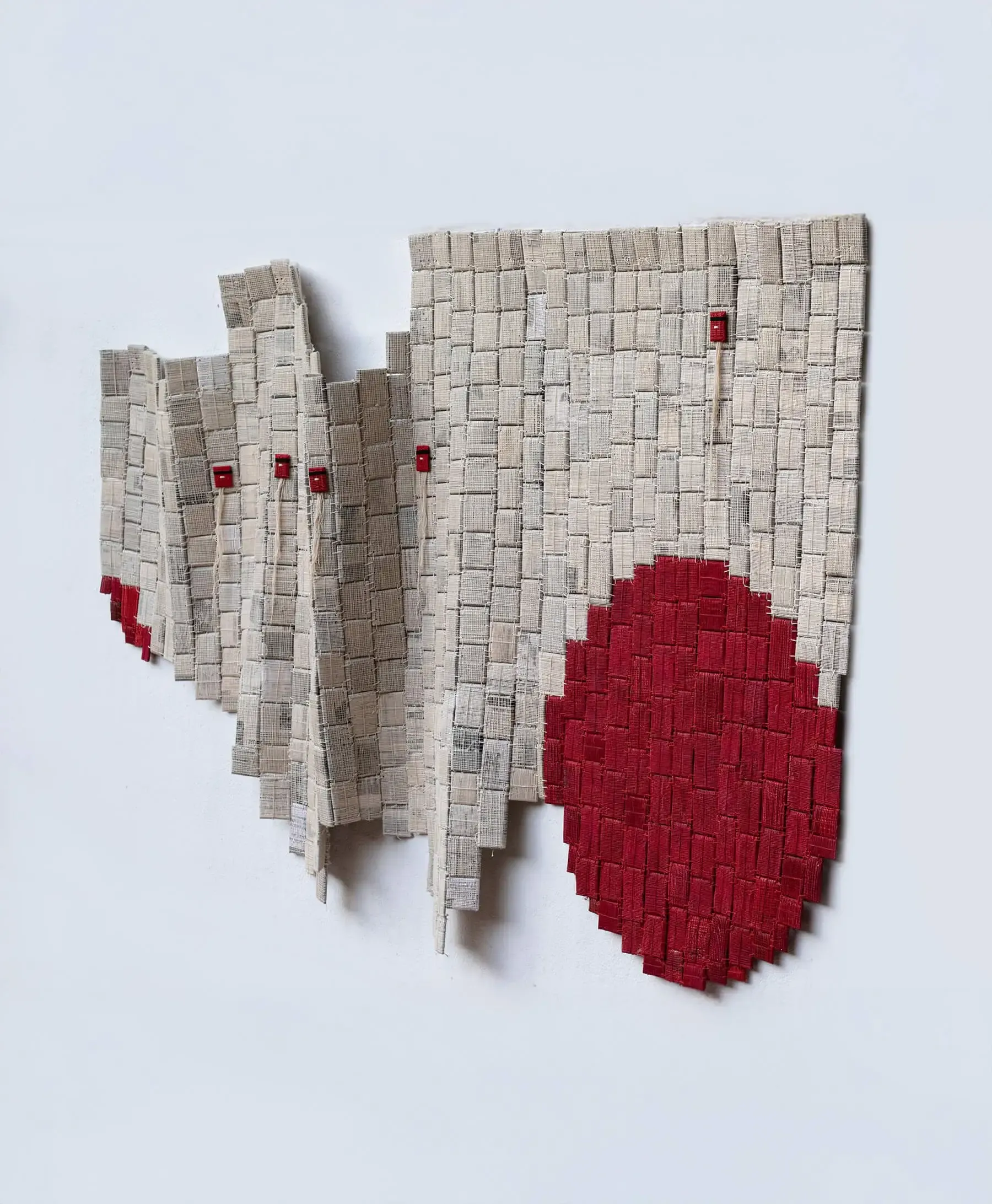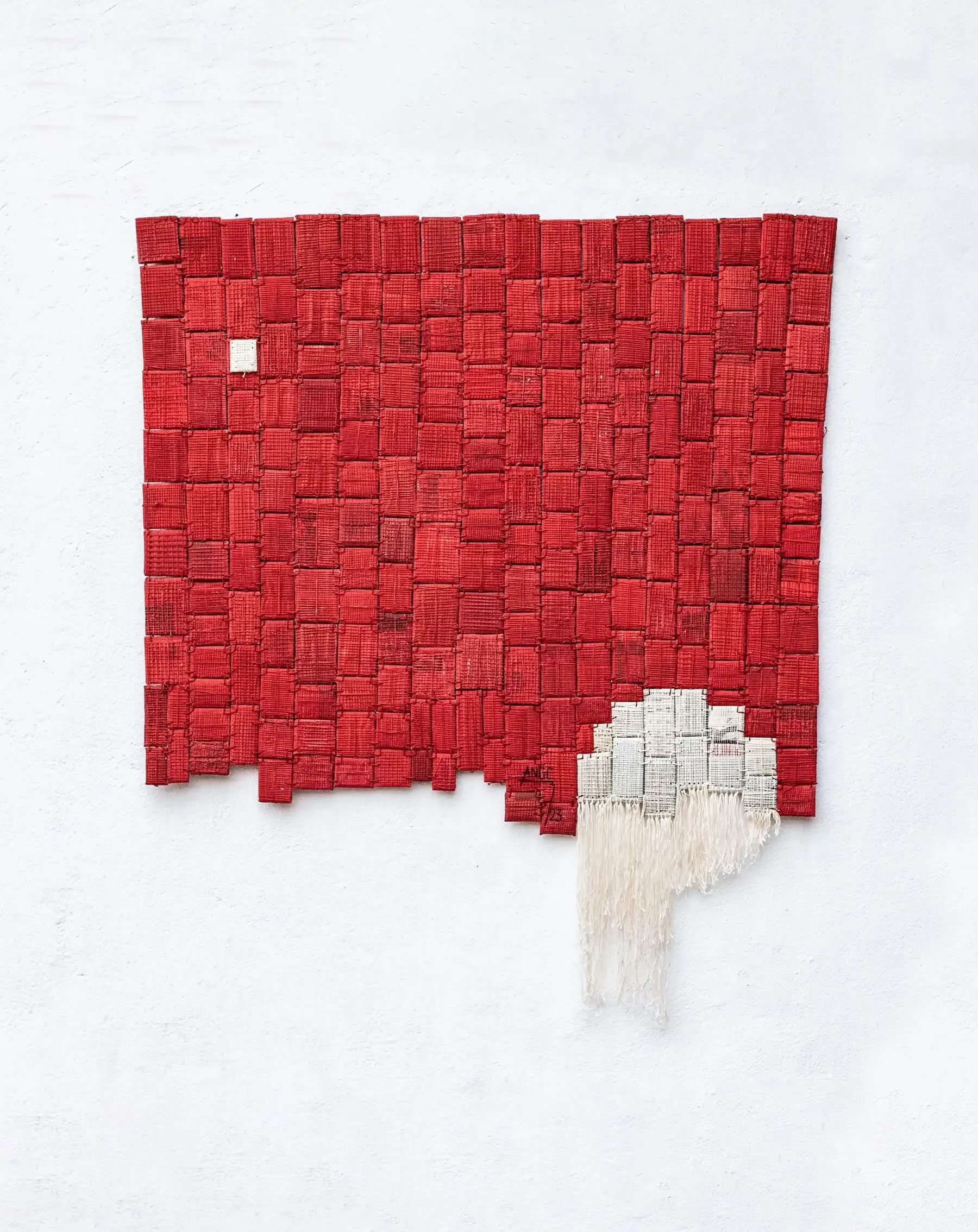 Rooted in the symbolism of Donso hunter amulets, his signature "woven gri-gris" are intricate compositions of folded newspaper and thread, reflecting resilience, protection, and collective memory. His work bridges craftsmanship and conceptual depth, forming textured landscapes that evoke themes of unity and vulnerability. With exhibitions spanning Africa and Europe, Dakouo’s practice continues to expand the dialogue between cultural heritage and modern artistic expression.