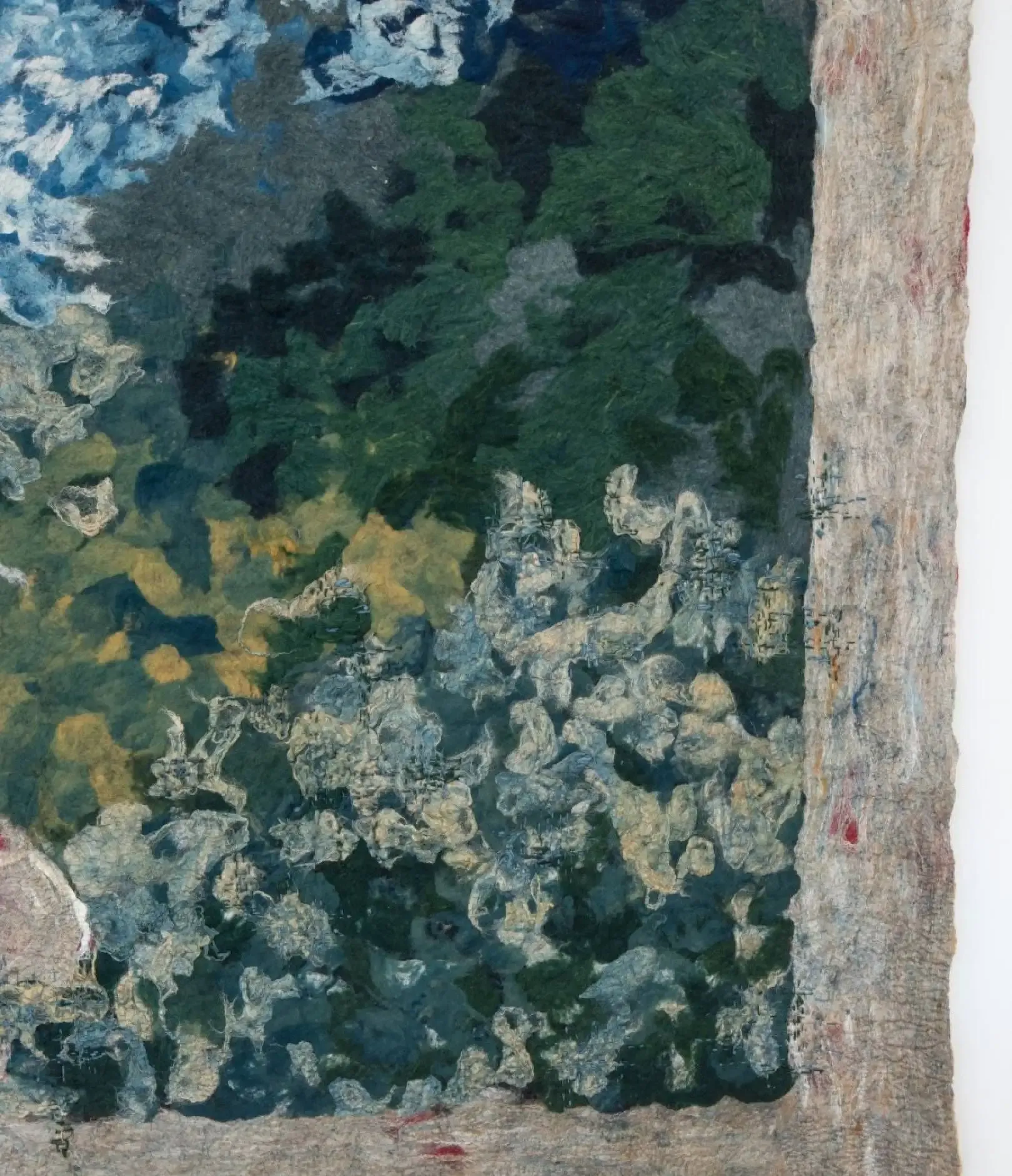 Claudy Jongstra is a Dutch artist celebrated for her woolen artworks that draw from a multifaceted approach, uniting artistry and ecological stewardship.