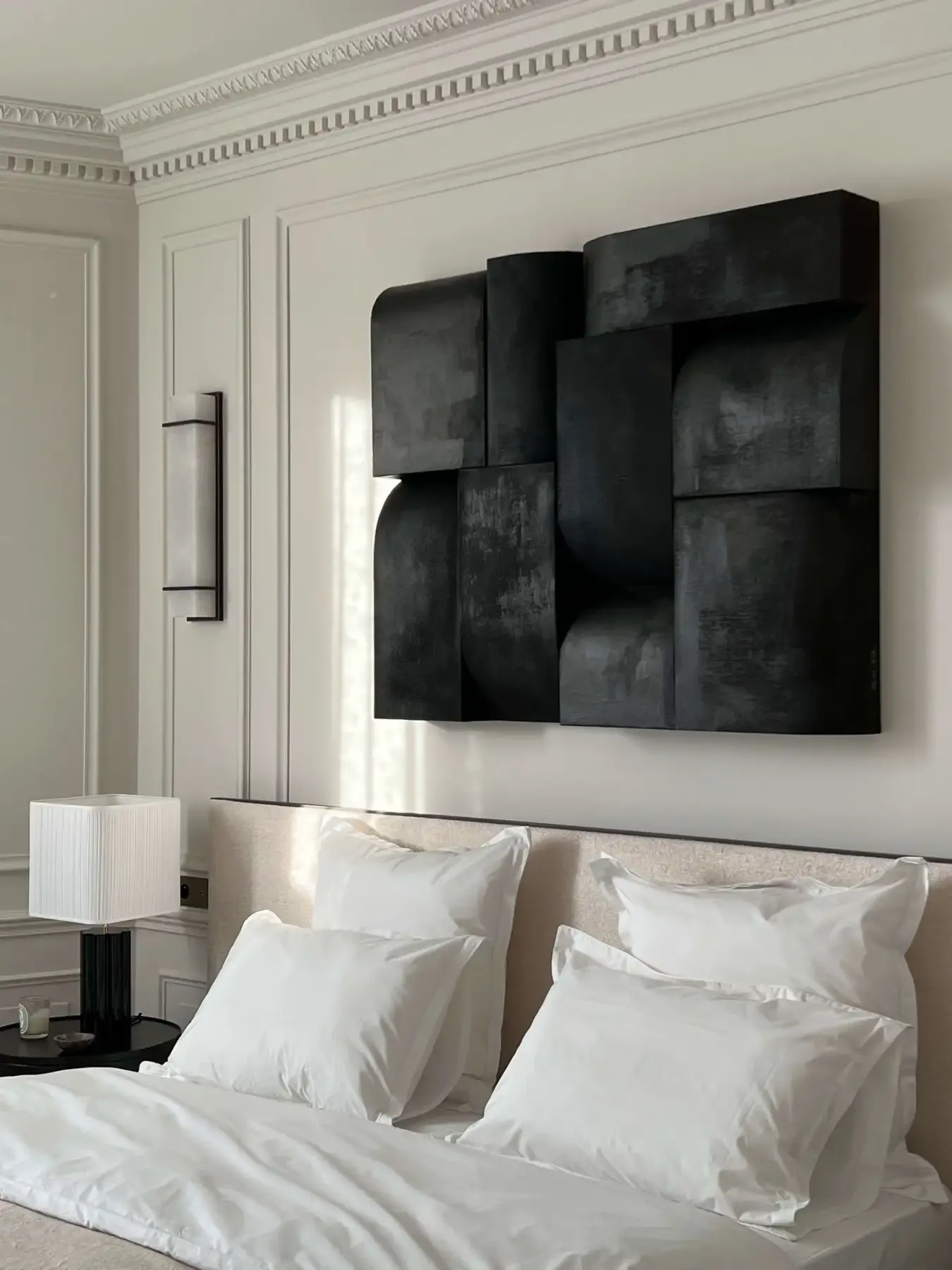 Duality coexists in peace, just like the one artist finds in the semi-meditative state of honest, time-consuming craftsmanship. The sense of calm is easily transferred to the viewers. Bik aims for the essence of harmony - not by repetition of forms but bringing the unity to, often opposed, parts of his compositions. He works mostly with wood, cardboard, resin, plaster and paint, mixing traditional and original techniques. Light and shadows, casted by geometrical shapes, add another element to the decomposition, beyond the artist's control. Monochromatic and raw, the forms are far from cold. They allure with textures, giving a strong haptic, sensual impression. The compositions are always abstract. To Bik, this is the most personal form of art, a reflection of the artist’s true self.