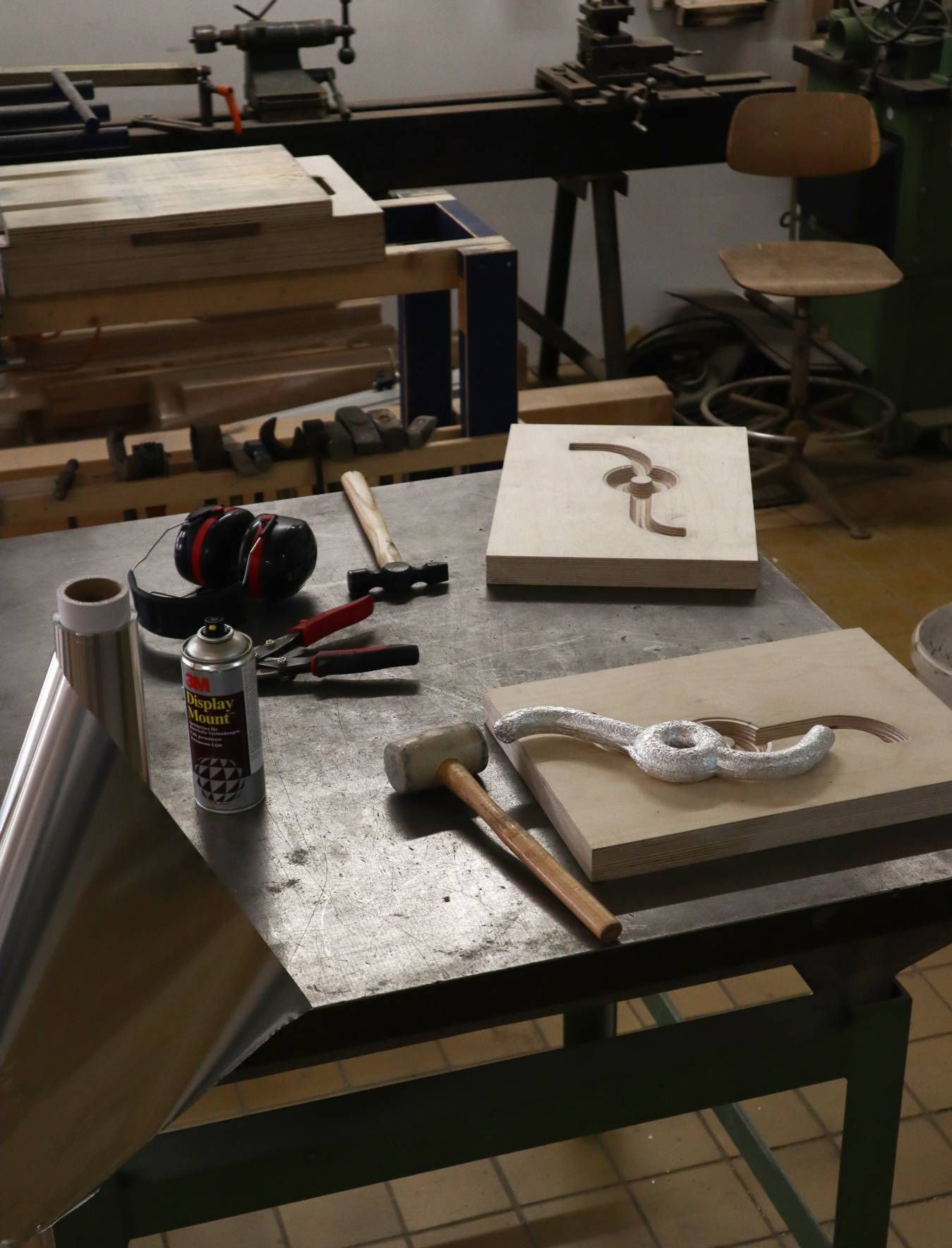 “The pattern of Blend consists of inlay work. Different woodgrains are cut and put back in different places. Inlay work is a very precise and accurate process. In addition to this difficulty level, some works have 500+ different pieces I need to assemble”