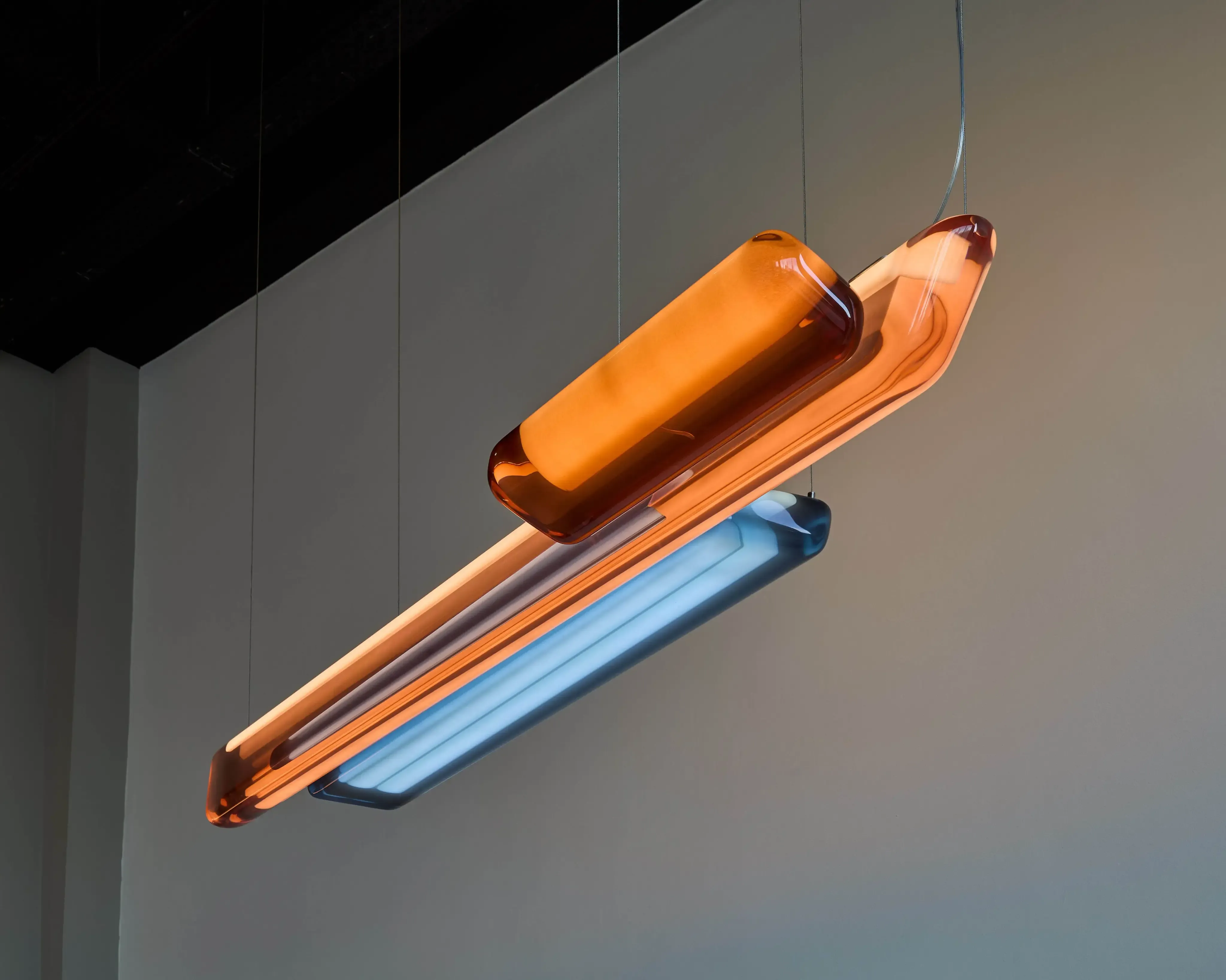 Roseate Tern is a collectible pendant light that channels the elegance of its bird inspiration through an elongated sculptural form. Crafted from polymer resin and aluminium, it integrates a 24V LED, producing a soft, ambient illumination that flows across its polished and translucent surfaces. The play of light and material evokes the motion and delicacy of flight, creating a dynamic focal point for modern interiors.