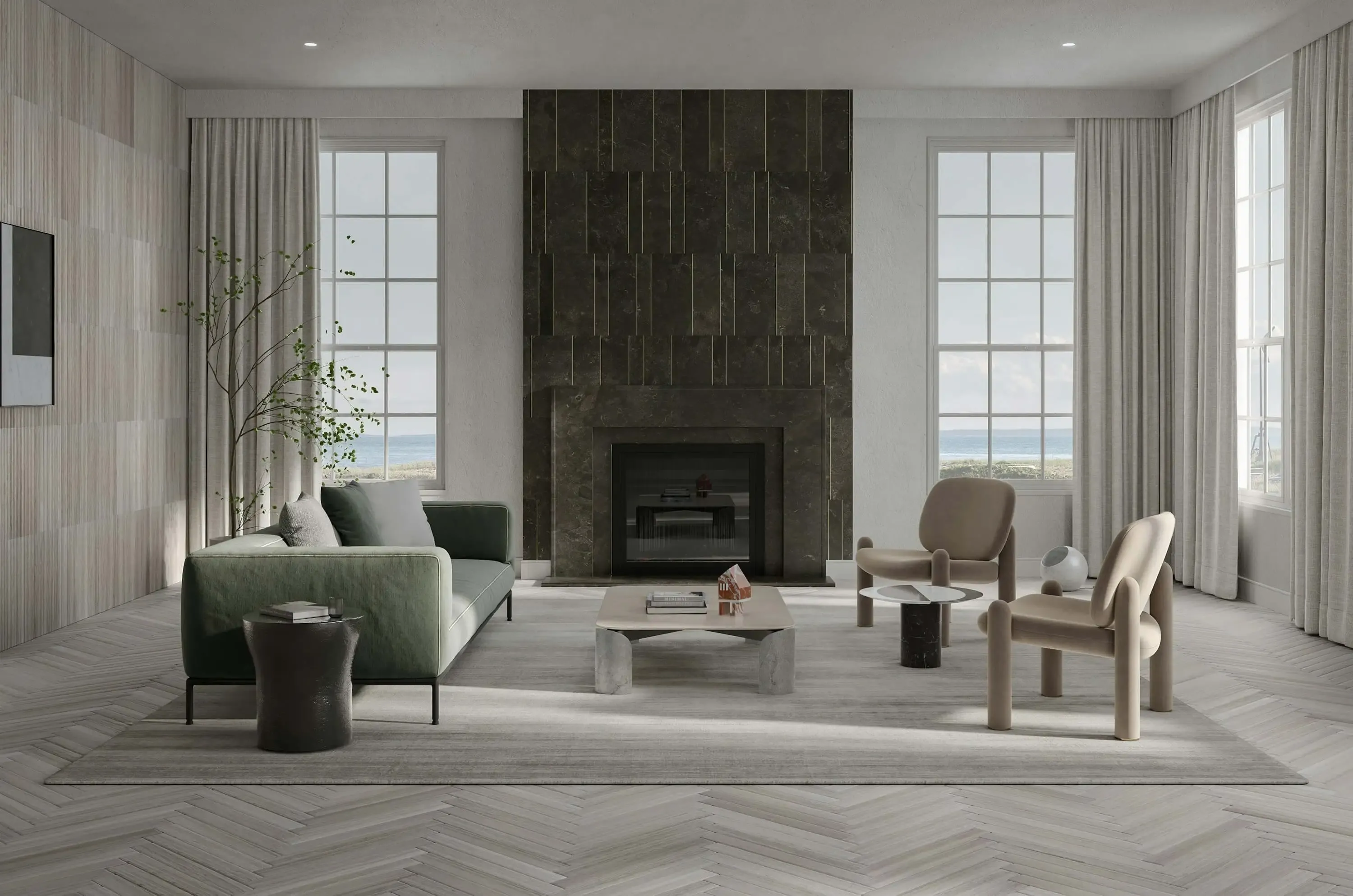 Finishes: Bianco Carrara, Gris du Marais®, Pietra d'Avola, Crema d'Orcia Aura, Verde Guatemala, Silk Georgette®
