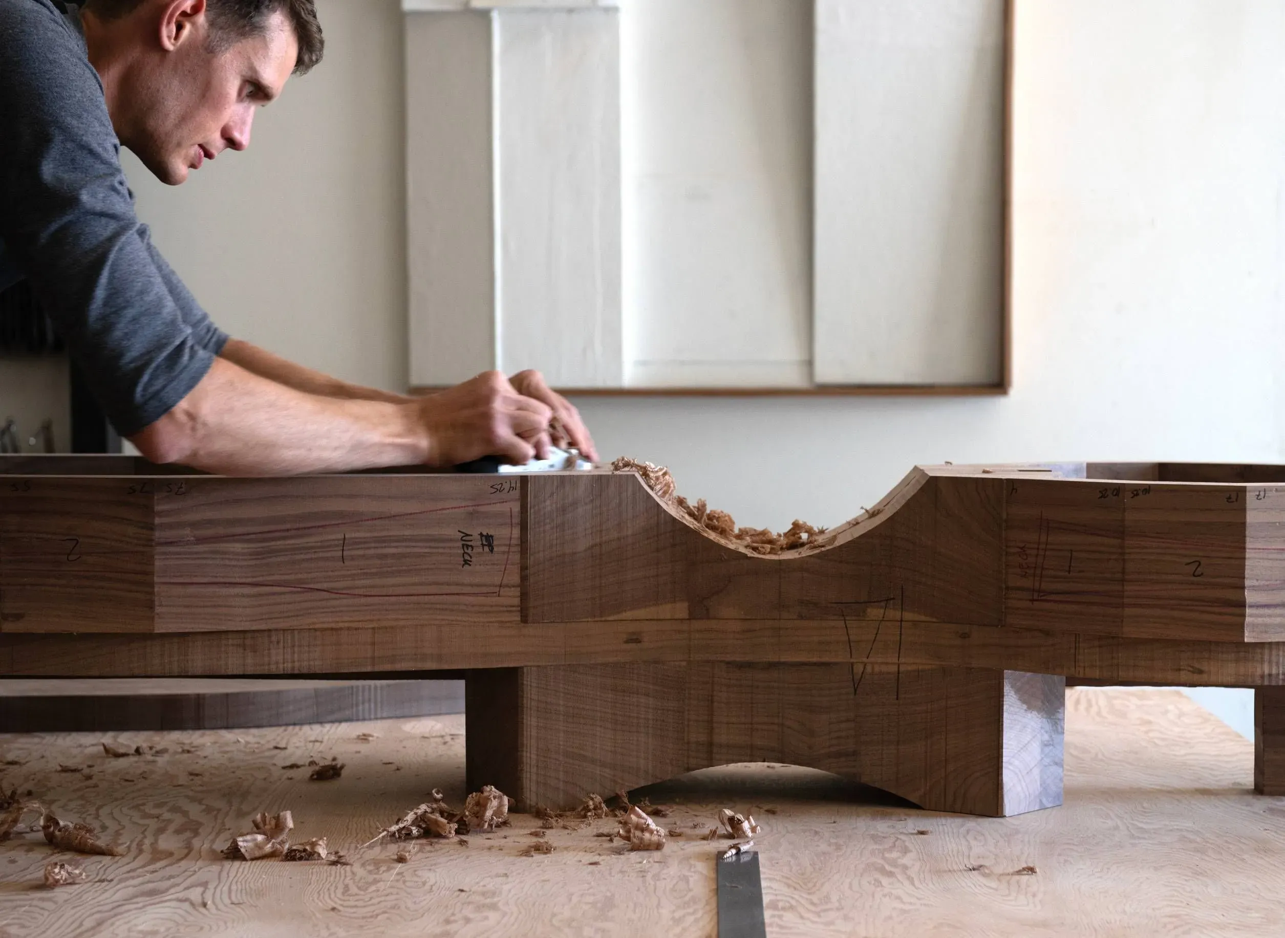 Caste is furniture, lighting, and objects designed by Ty Best. Based in Montana with a small collaborative team of exceptional woodworkers and finishers, Ty is inspired by natural forms, sculpture, brutalist architecture, and the workmanship of traditional crafts. During his early career in fashion, fine art, and installation design, Ty became fascinated with the structures used to present his art, seeing them as art in themselves. His focus grew into sculptural furniture with an expressive language of shaped natural materials. Each object is an experimentation in fluidity and skillful control, a dialog of meaning and functionality. Caste honors a hand-built approach, dedicated to the intimate labor of hand drawing and handcrafted design. The isolation and quietness of Montana are integral to Ty's creative process, which is just as important as the outcome. This quality of care can be felt and recognized in all that is Caste.