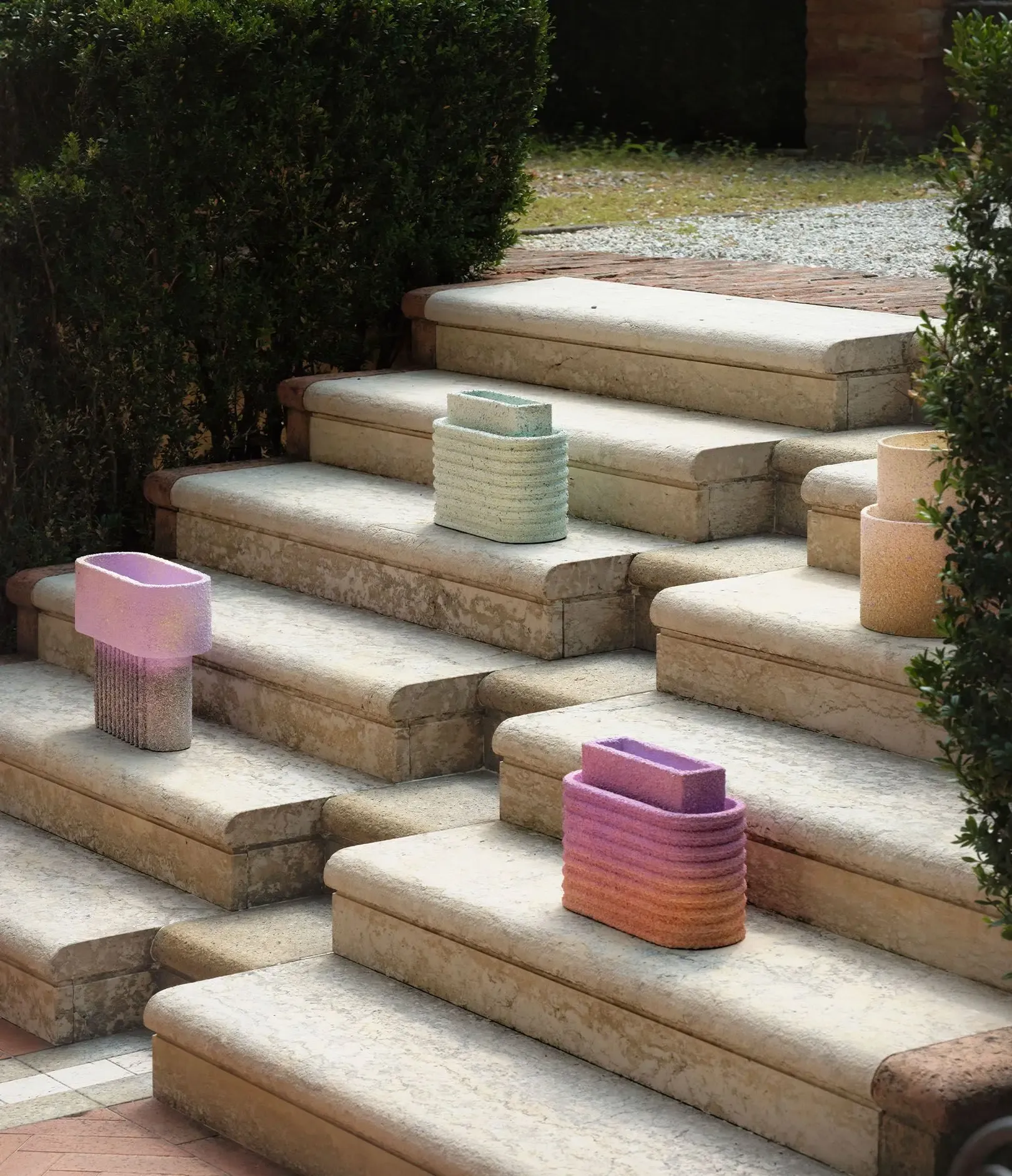 CIMENTO® is a design brand that redefines material identity through its unique use of cement-based surfaces and sculptural forms. Rooted in Venetian architectural heritage, the brand has developed a proprietary material, also called “CIMENTO®”, composed of over 90% mineral aggregates mixed with a cement binder. Lighter than traditional concrete yet retaining its tactical strength, CIMENTO® allows for the creation of large-scale furniture and surfaces with a monolithic spatial presence. The material’s porous texture and earthy tonality lend each piece an elemental character, bridging raw materiality with refined composition.