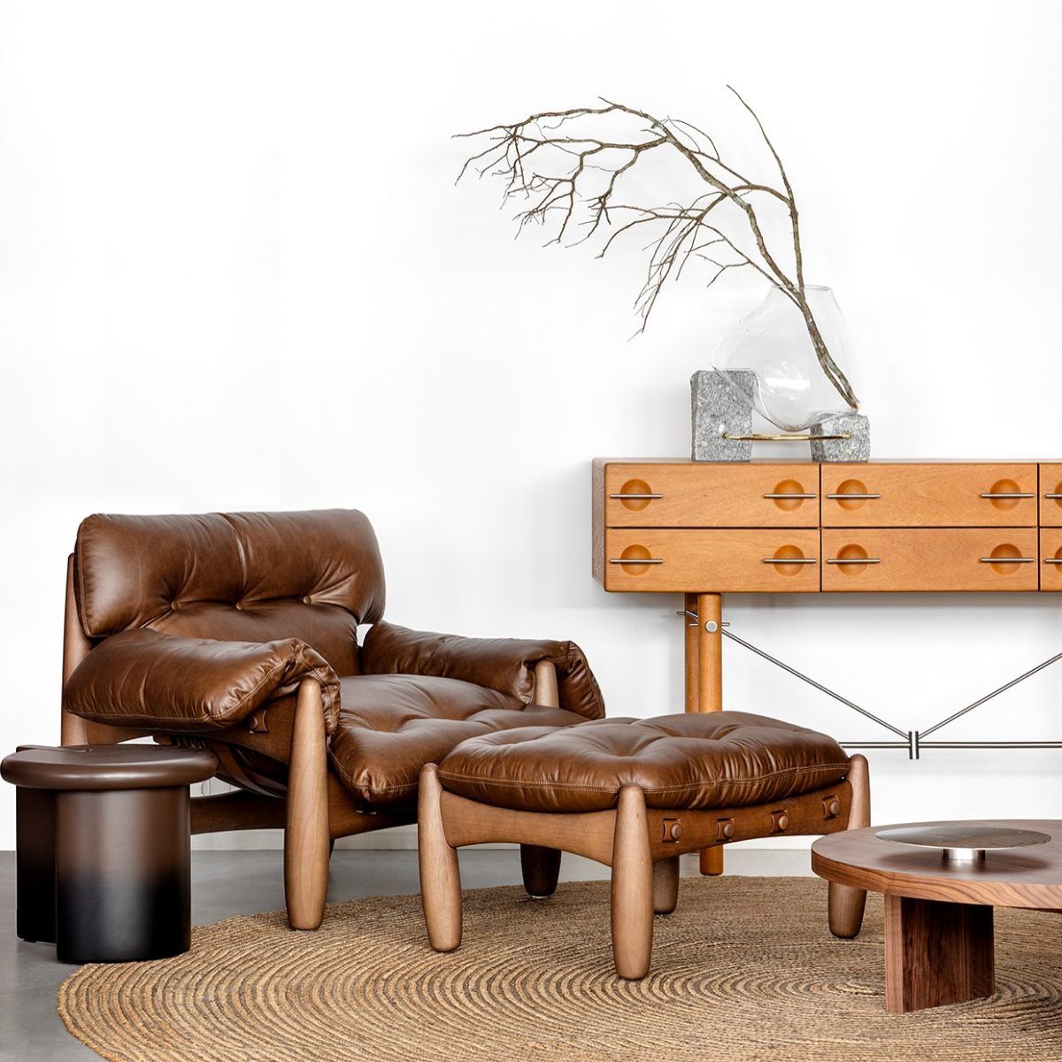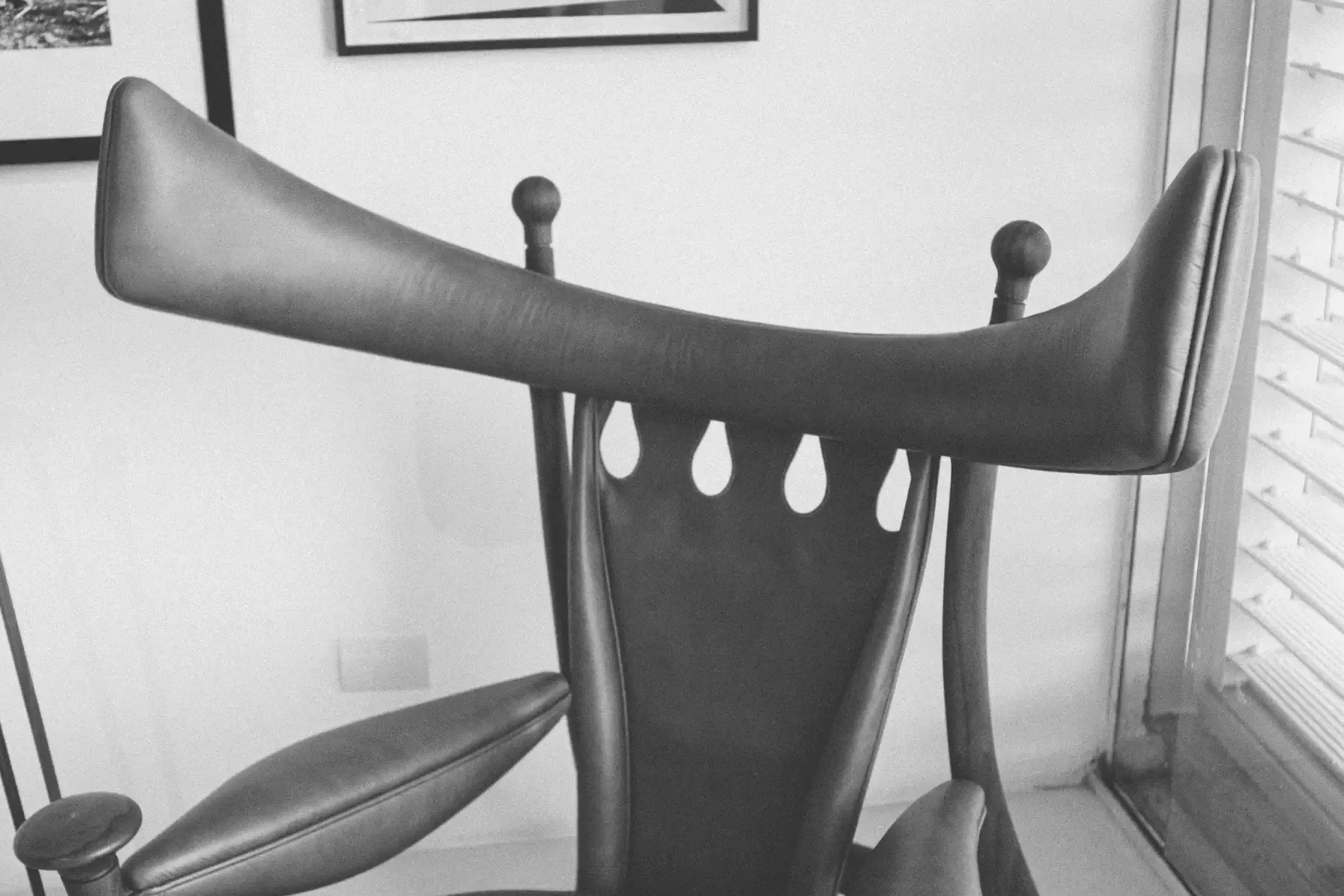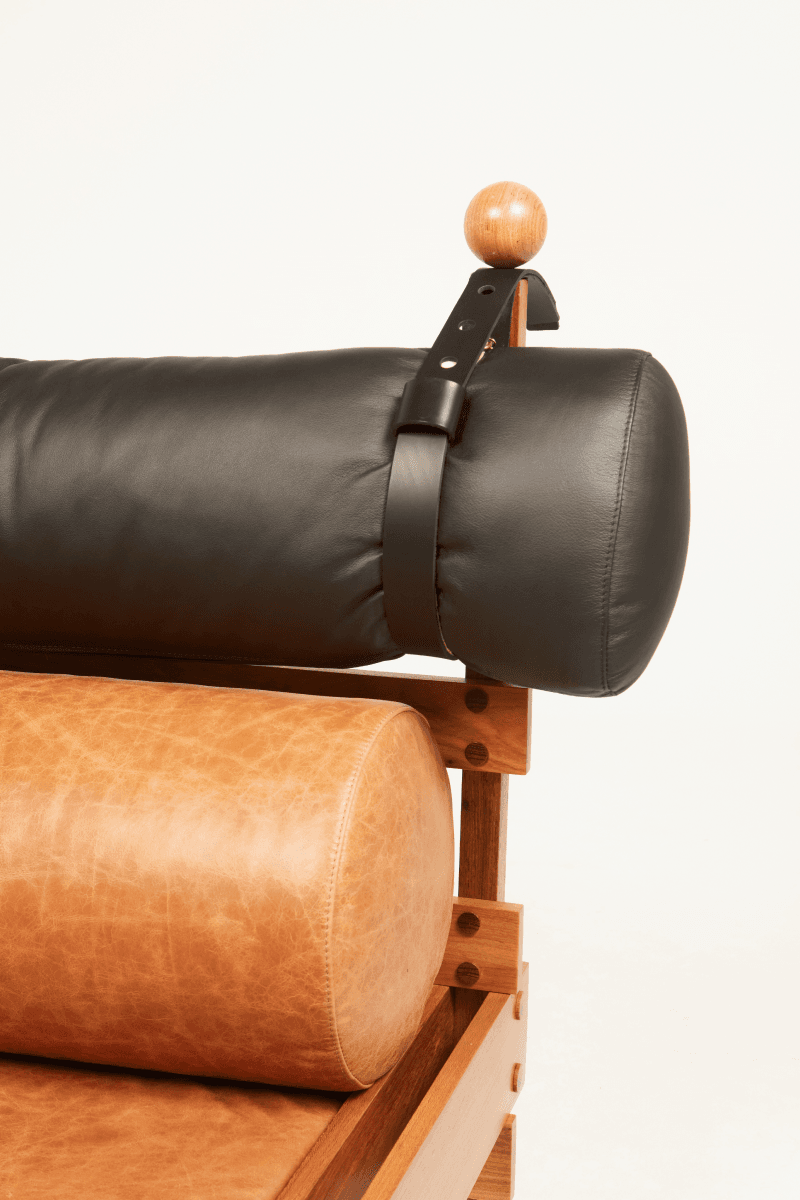 Mole (Sheriff) armchair (1957), perhaps his most famous design, with a chunky wooden frame, leather straps and oversized leather cushions that sag and envelop the sitter, becoming a manifesto for relaxed Brazilian modern living.